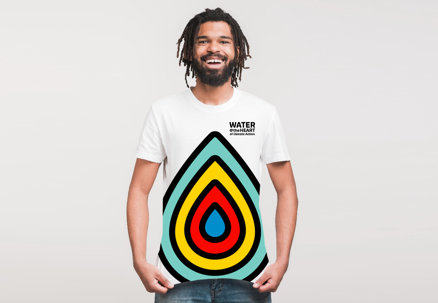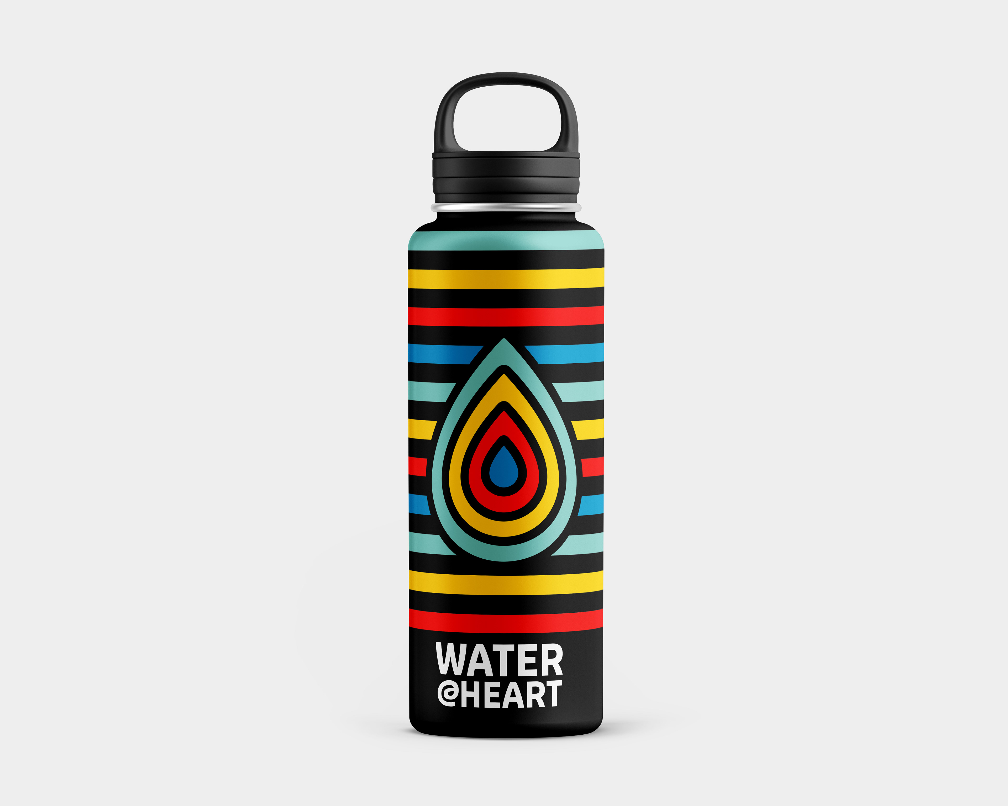 The idea behind the logo is the moment when a drop touches the surface of water and generates more and more ripples that circle that first droplet, as if they were protecting it. The concept of protection is the core of the project, being called in fact Water at (@) Heart.